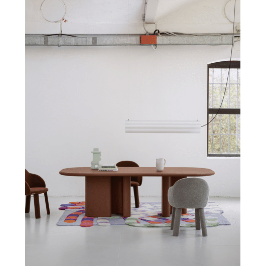 De ovalen Bonbon-tafel van Miniforms combineert zachte vormen met een opvallend design. Het karakteristieke, gebogen onderstel creëert een speels ritme van licht en schaduw, waardoor de tafel in elke ruimte een dynamische sfeer neerzet. De robuuste vormgeving en heldere, grafische lijnen geven de tafel een herkenbare uitstraling die zowel thuis als in openbare ruimtes tot zijn recht komt. Bonbon is een perfecte mix van functionaliteit en stijl: een meubel dat opvalt zonder te overheersen.