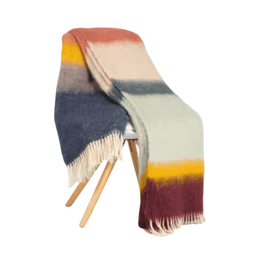 Kruip knus en stijlvol weg onder de luxueuze plaids van Mantas Ezcaray. Deze Spaanse dekens, geweven uit zachte natuurlijke vezels zoals mohair en wol, staan bekend om hun rijke kleuren en uitzonderlijk comfort. De Matisse model heeft de volgende samentelling: