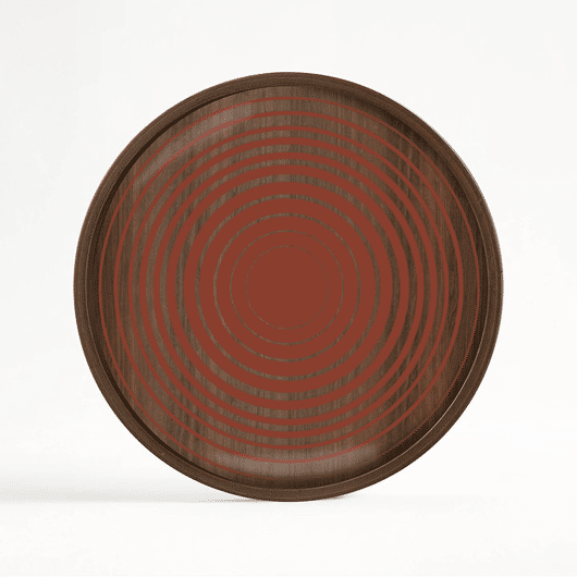 Het Pumpkin Circles dienblad van het merk Ethnicraft is een ontwerp van Dawn Sweitzer en is gebaseerd op de natuur en cultuur die ze ontdekte op haar vele reizen. De elegante pompoenoranje cirkels met verschillende breedtes geven een warme en strakke toets aan jouw interieur, het glazen blad geeft letterlijk een extra dimensie aan het dienblad. De print wordt door de houten rand als het ware ingekaderd als een echt kunstwerk. Dit dienblad past perfect bij de andere plateaus uit de collectie van Ethnicraft.